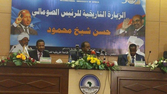 Xasan Sheekh ayaa hadalkan ka jeediyay xaruta dalka Suudaan ee Khartoum oo uu khudbad qiimo leh ugu jeediyay ardayda, macallimiinta iyo mas’uluiyiin ka tirsan Jaamacadda Caalamiga ee Afrika (International Univeristy of Africa). Waxaa sidoo kale hadalka kasoo qeybgaley mas’uuliyiin ka tirsan dowladaha Soomaaliya iyo Suudaan.